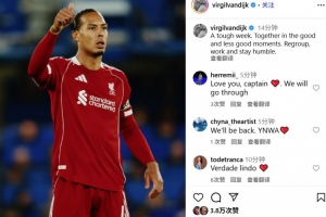 范迪克写道:这是艰难的一周。无论顺境逆境,我们都团结在一起。重整旗鼓,努力工作,保持谦逊。