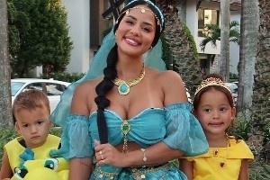 体育资讯11月3日讯 热火球星泰勒-希罗的女友Katya Elise Henry昨日在社媒晒出了自己的万圣节装扮,其中她COS阿拉丁神灯女主角,男友希罗COS野兽。