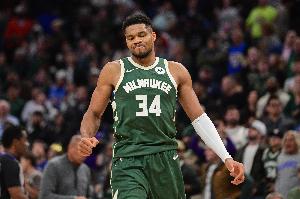 上半场,字母哥出战14分钟,12投7中,罚球1中1,得15分6板2助1盖帽。